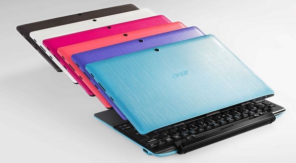 Empezamos por los modelos más económicos, los Acer Aspire Switch 10 E. Estos equipos tienen una clara vocación hacia el mercado de la educación y llegarán en hasta seis colores diferentes (negro, blanco, rosa, naranja, azul oscuro y azul claro). Su tamaño de pantalla asciende a las 10,1 pulgadas, el mismo formato que se ha convertido en un estándar dentro de los tablets. Este panel es de tipo IPS táctil con resolución de 1.280 x 800 píxeles. Esta tecnología favorece unas imágenes brillantes y sobre todo unos excelentes ángulos de visión. Pero lo interesante de este modelo llega cuando lo combinamos junto a su teclado con un sistema especial de bisagras. Este diseño versátil (también presente en el Switch 10) nos permite utilizar el modelo como un portátil tradicional o bien situar el tablet de manera inversa al teclado para ver contenidos de forma cómoda. Otro modo es el de tipo tienda, pensado sobre todo para utilizar apps táctiles. Finalmente, podemos desenganchar las dos partes del equipo y utilizar el Switch 10 E como un tablet al uso.