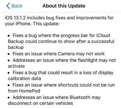 La nueva versión de iOS 13.1.2 llega al poco tiempo de haber lanzado iOS 13.1.1. En esta última se solucionaron los problemas en el funcionamiento de ciertas aplicaciones y servicios como Siri y los teclados de terceros que instalaban los usuarios. Así mismo se corrigió el error con la batería que provocaba que esta se descargara en poco tiempo.