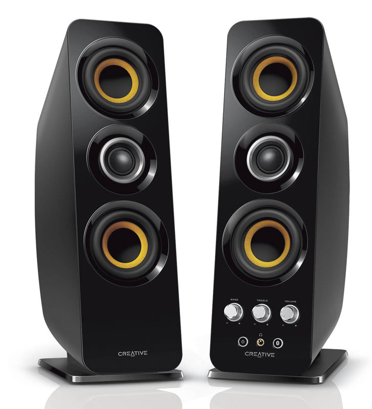 Manteniendo su formato de 3 conductores MTM (Midrange-Tweeter-Midrange), cada torre de altavoces dispone de cúpulas de seda para los tweeters, con el objetivo de emitir precisos tonos agudos. Además, dispone de conductores de fibra de vidrio tejida para mejorar su flexibilidad y entregar cálidos y detallados sonidos de rango medio. La tecnología Creative BasXport permite al altavoz mejorar los tonos más bajos del rango medio y entregar potentes graves sin la necesidad de voluminosos, y generalmente grandes y molestos, subwoofers.