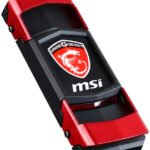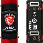 El Bridge sigue el diseño de los MSI’s TwinFrozr coolers, por lo tanto tiene una decoración en negro y rojo con un gran emblema de MSI gaming. Este emblema MSI se ilumina, y su iluminación se puede controlar a través de la MSI Gaming App.
