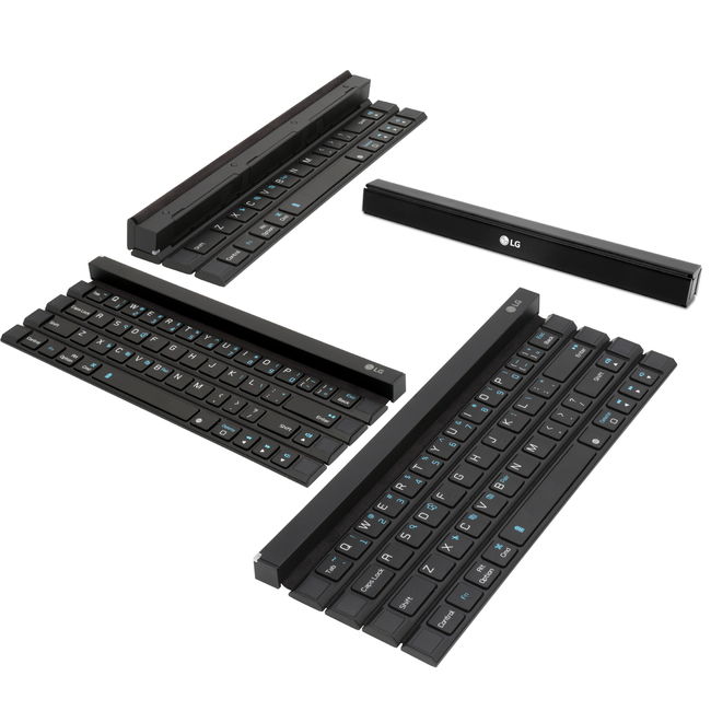 LG anuncio el «Rolly«, un teclado Bluetooth que se pliega a lo largo de las cuatro filas de teclas para crear un dispositivo tipo varita que se puede llevar con facilidad en una cartera o bolsillo.