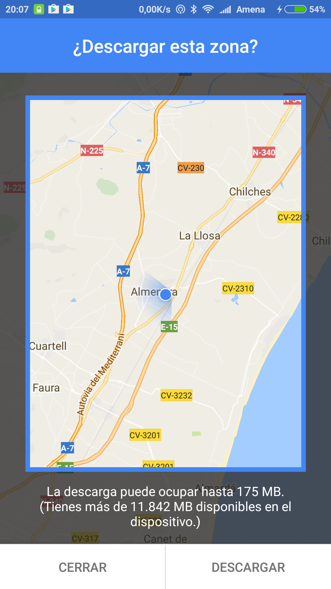 La última versión de la app de Google Maps para Android te la puedes descargar desde este enlace. Una vez dentro de Maps pulsa sobre el icono con tres barras horizontales de la parte superior izquierda, a continuación dirígete a Zonas sin conexión > Selecciona tu propia zona y finalmente descarga el mapa de tu zona.